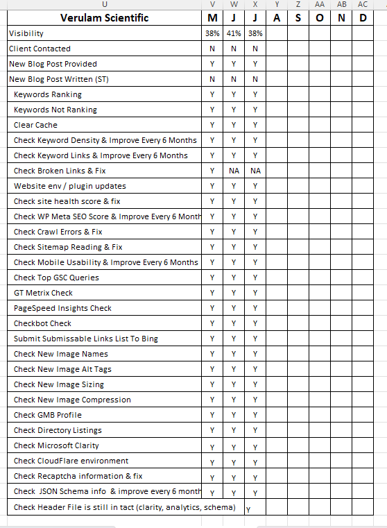 For each SEO client, monthly update checks should be run.