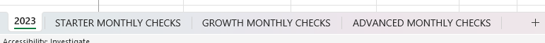 Each of these should then have a smaller, monthly checklist inside the relevant tab at the bottom of the sheet. If not, create one.
