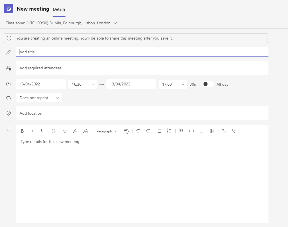 (Meeting Organiser will have to use the link in the calendar to join, and let in participants)