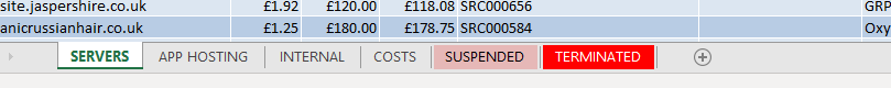 - Update the Hosting Spreadsheet by moving the listing from the “Servers” list, to the red “Terminated” tab